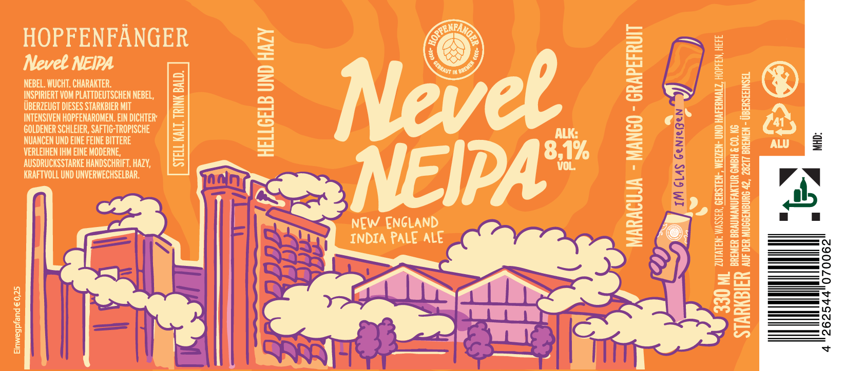 Inspiriert vom plattdeutschen Nebel überzeugt dieses Starkbier mit intensiven Hopfenaromen. Ein dichter goldener Schleier, saftig-tropische Nuancen und eine feine Bittere verleihen ihm eine moderne, ausdrucksstarke Handschrift.